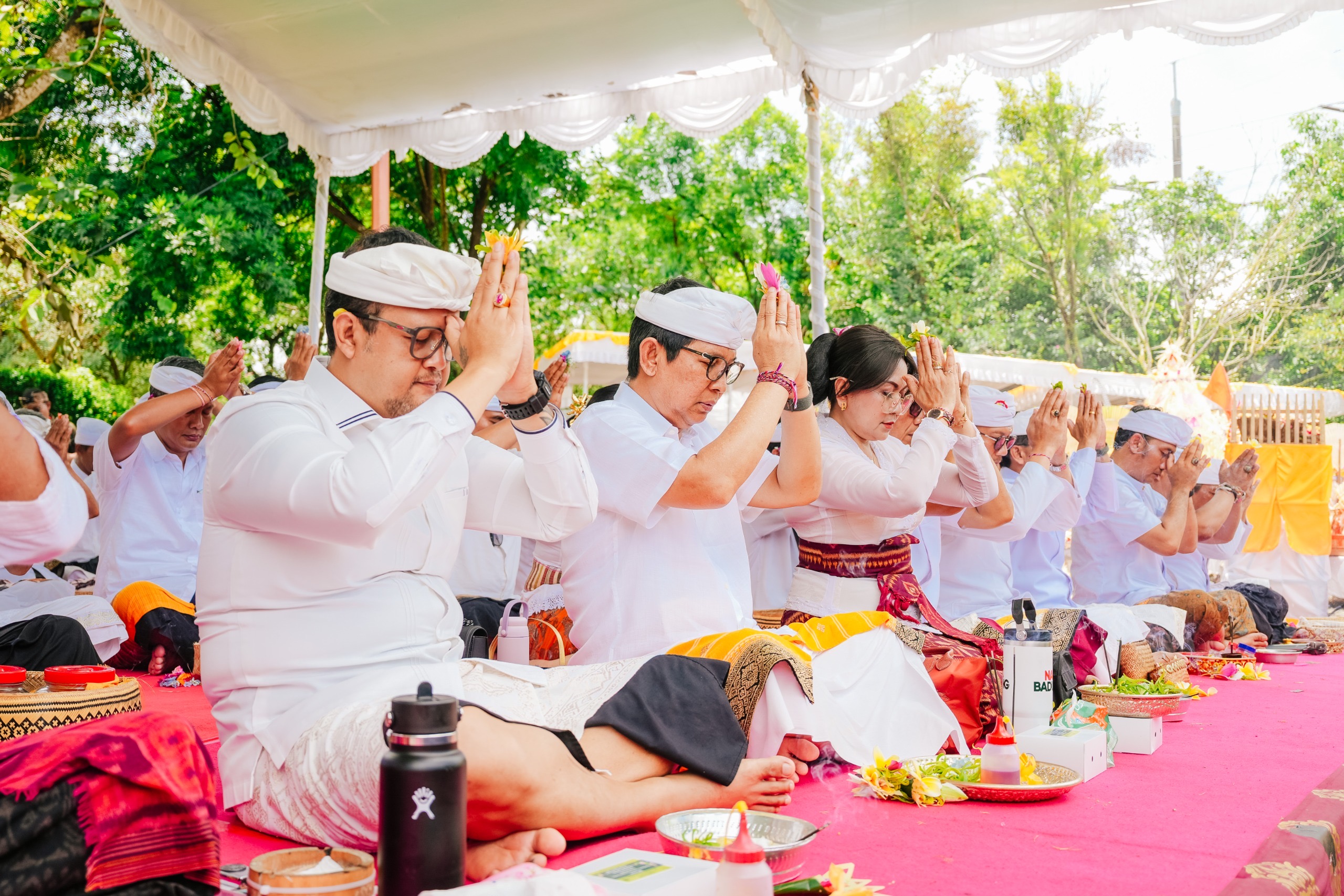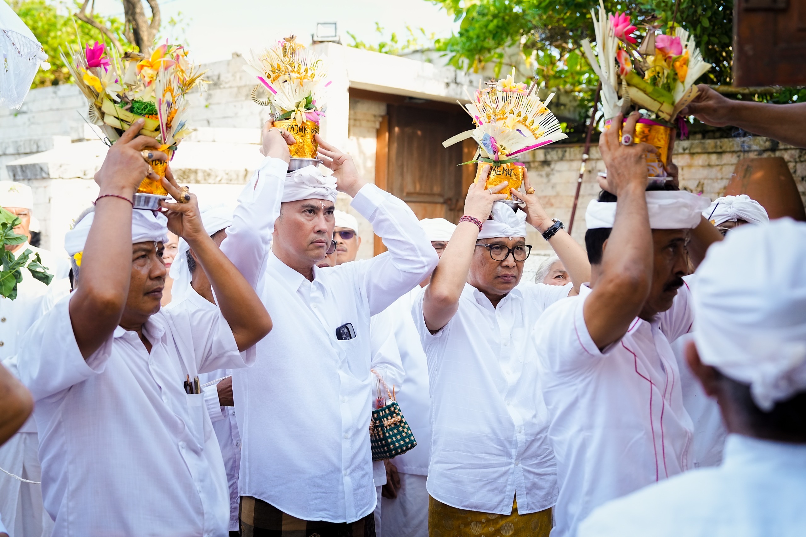 Bupati Badung, I Wayan Adi Arnawa didampingi Nyonya Rasniathi Adi Arnawa, menghadiri upacara Melaspas, Matur Piuning, dan Nyukat Genah di…