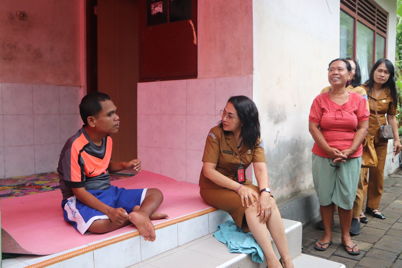 Ketua Tim Penggerak PKK Kabupaten Badung Nyonya Rasniathi Adi Arnawa menunjukkan kepedulian sosial kepada masyarakat dengan menyerahkan bantuan sembako dan…